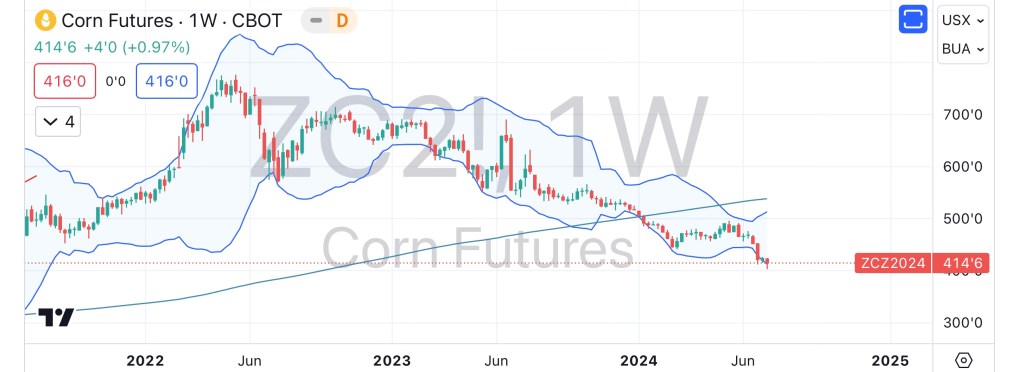 the price of Corn has nearly halved since the moment Russia invaded Ukraine.