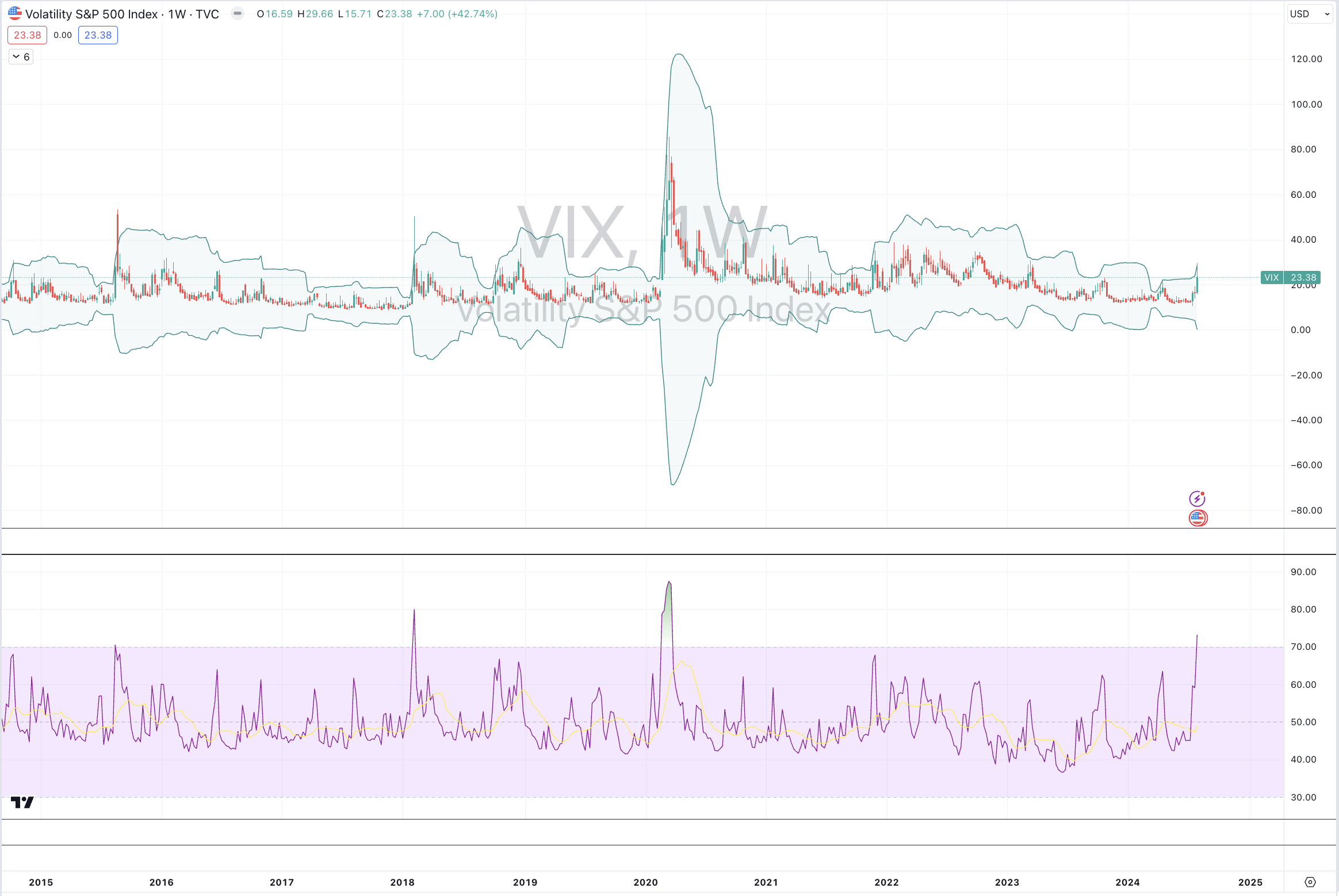 It is the 4th time in 10 years that the VIX Index has simultaneously registered a weekly overbought signal and traded to 5 standard deviations above its 20 week moving average.
