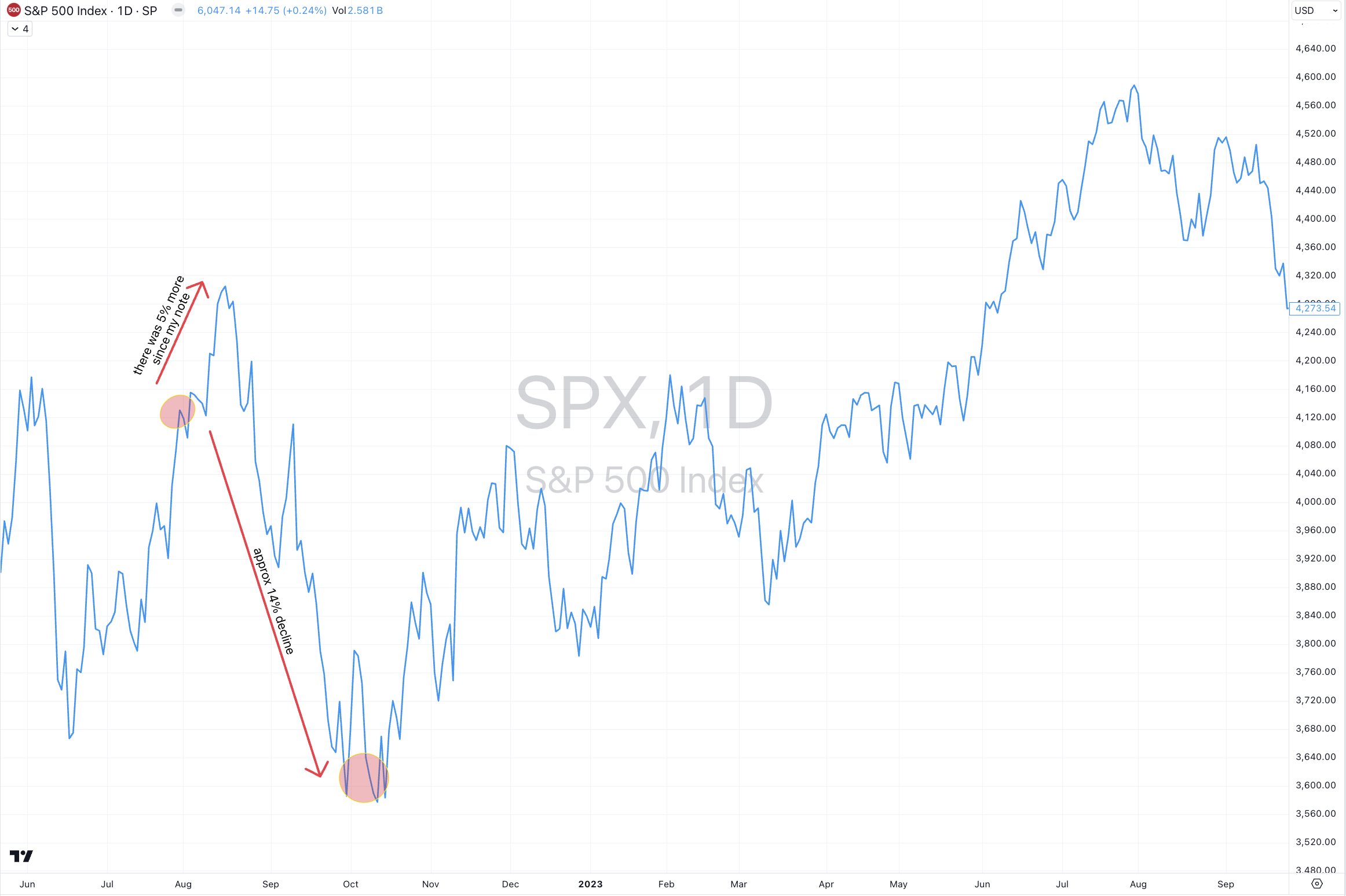 The daily and weekly charts below circle the price of the S&P 500 on July 31, 2022 and ‘the weeks ahead’ which have proved indeed “a safer moment to accumulate”