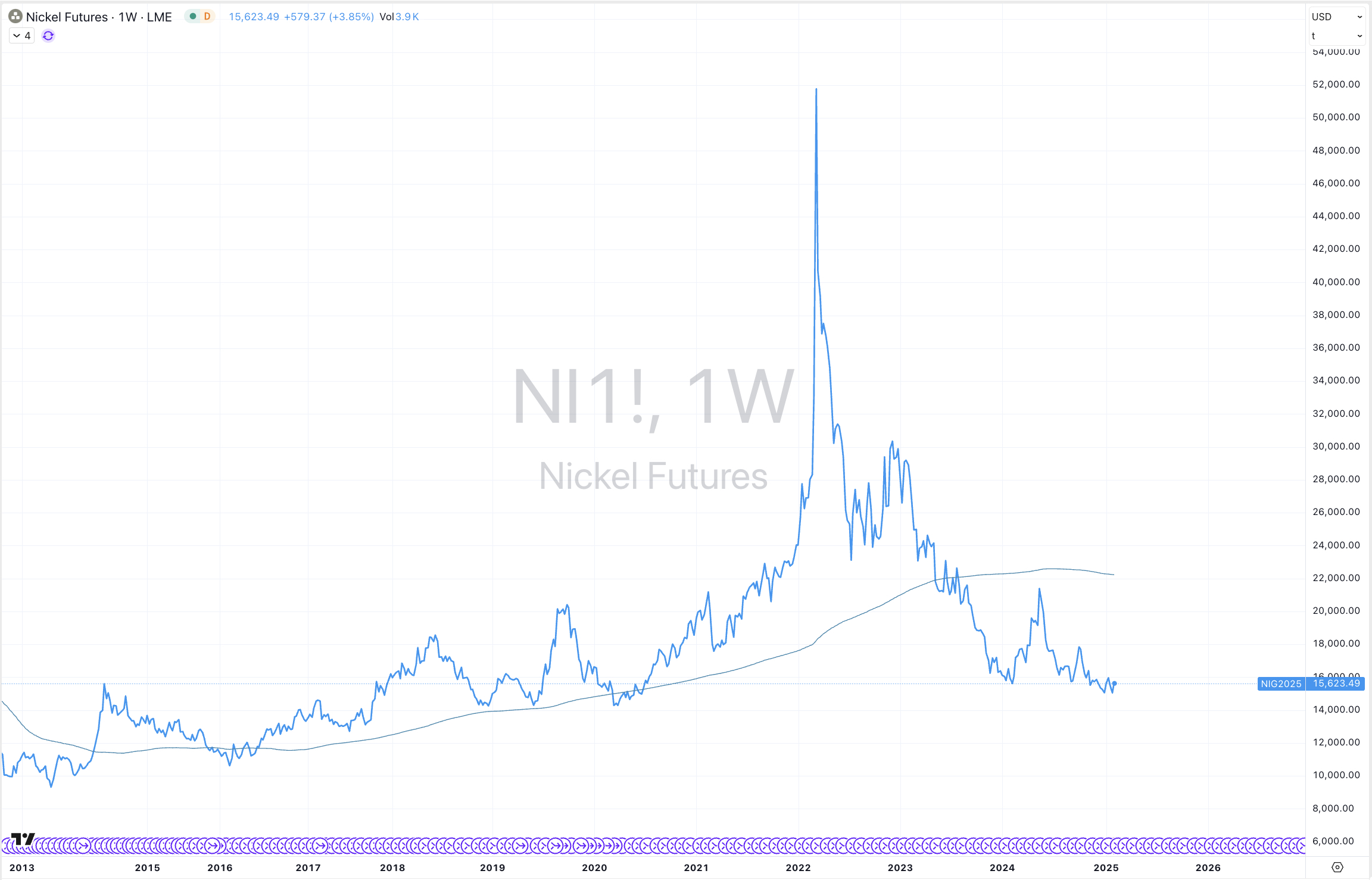 At the time of writing the price of LME (forward month) Nickel futures are trading at US$15,623.