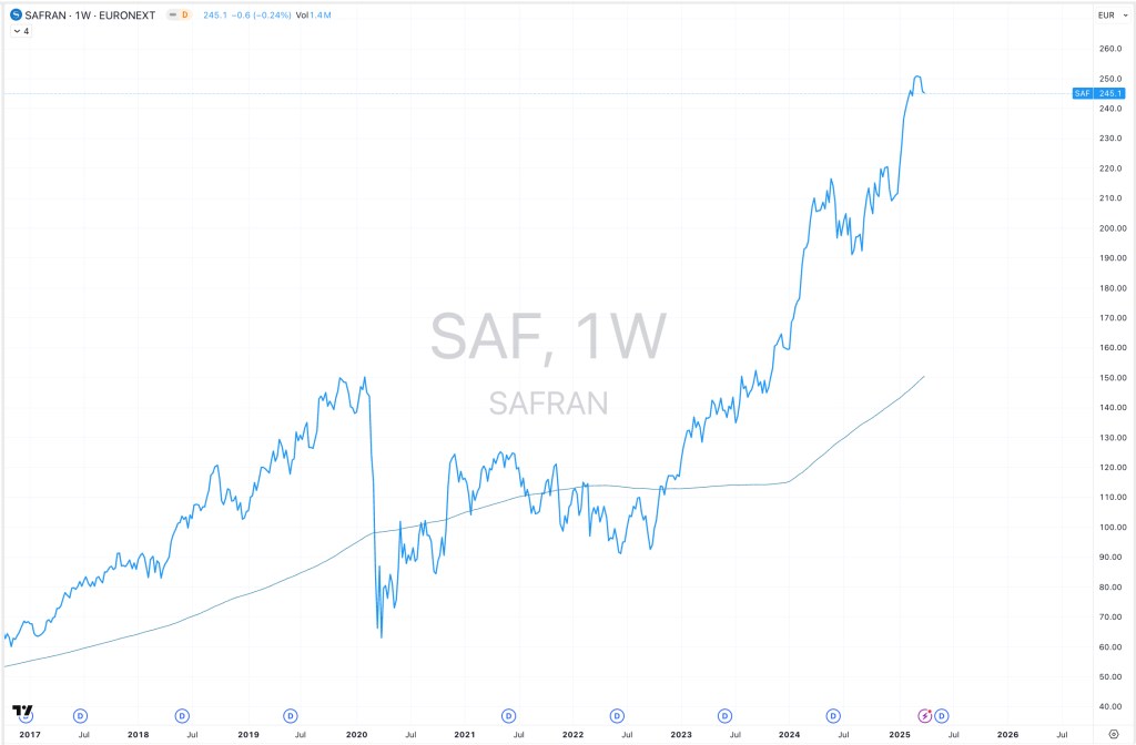 Out of curiosity, how do you get to the 170€ area on Safran? I get roughly to the same area with Elliott Waves on the weekly chart