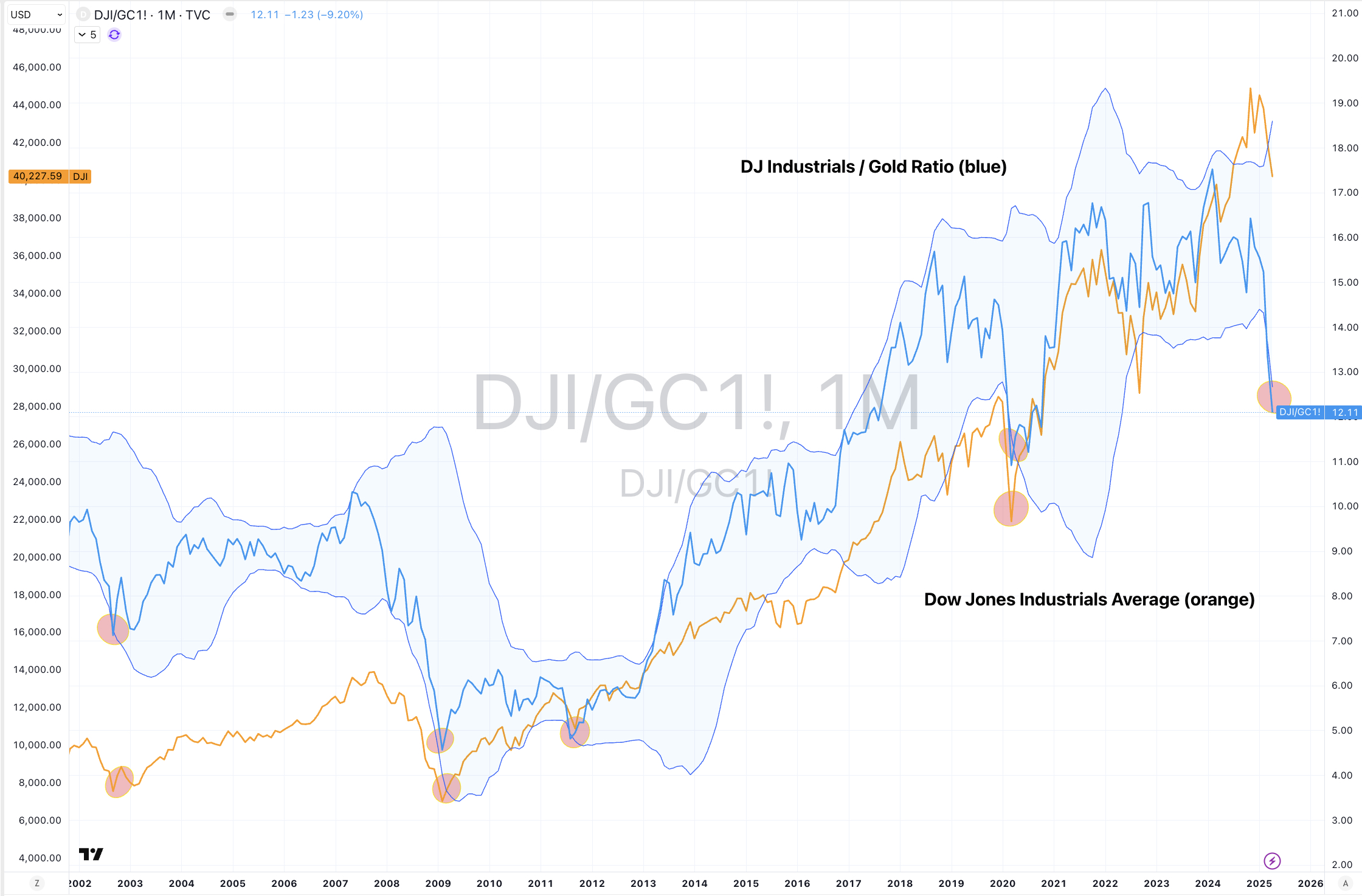 Rare trough in the DJIA/Gold Ratio