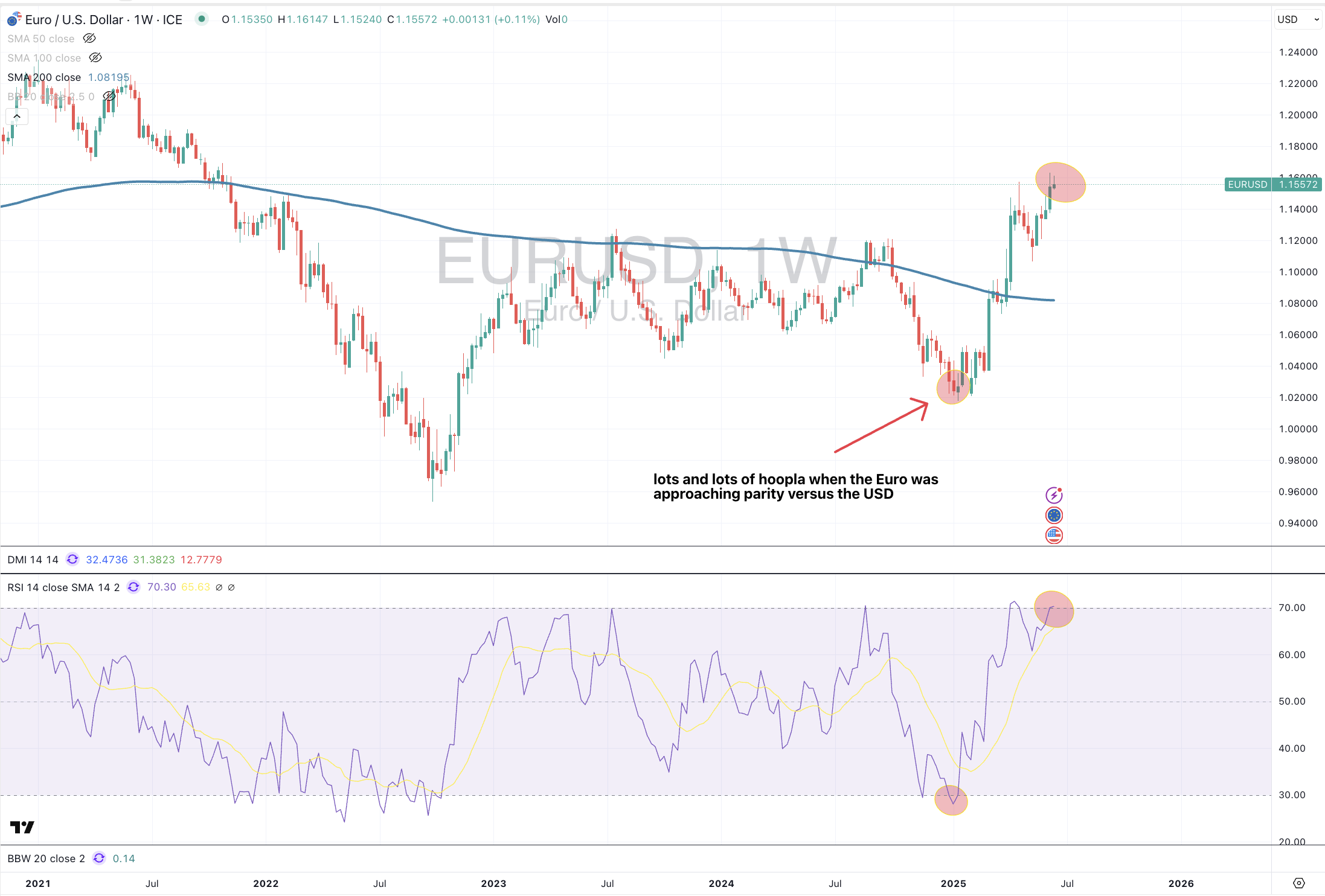Soon, there will be noise about the Euro’s strength versus the USD…and it’ll be time to sell it.