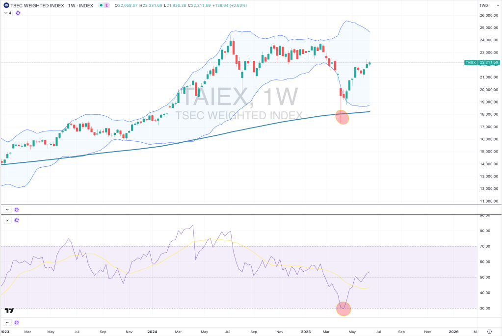 In the April 4, 2025 edition of my weekly Macro Extremes publication, Taiwan’s TAEIX equity index registered a quinella of oversold readings (a week prior to the broader April 7-9 lows) while also reverting down to a longer-term mean.