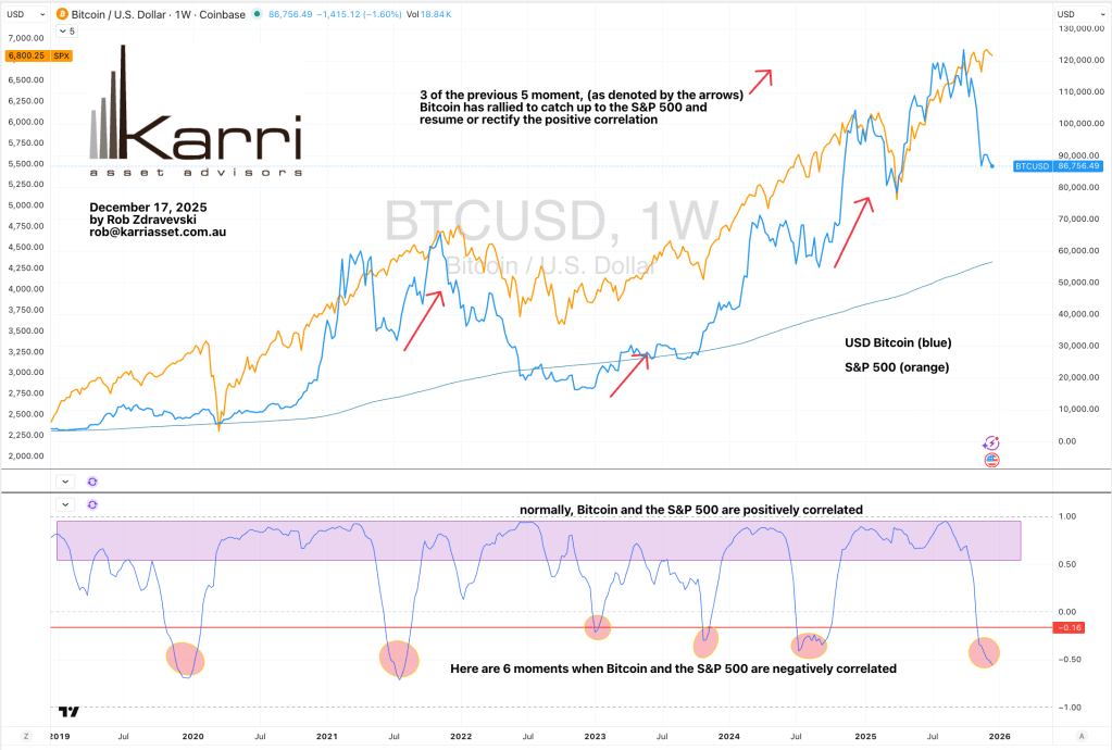 Here is a look at the correlation between Bitcoin and Equities (S&P 500)