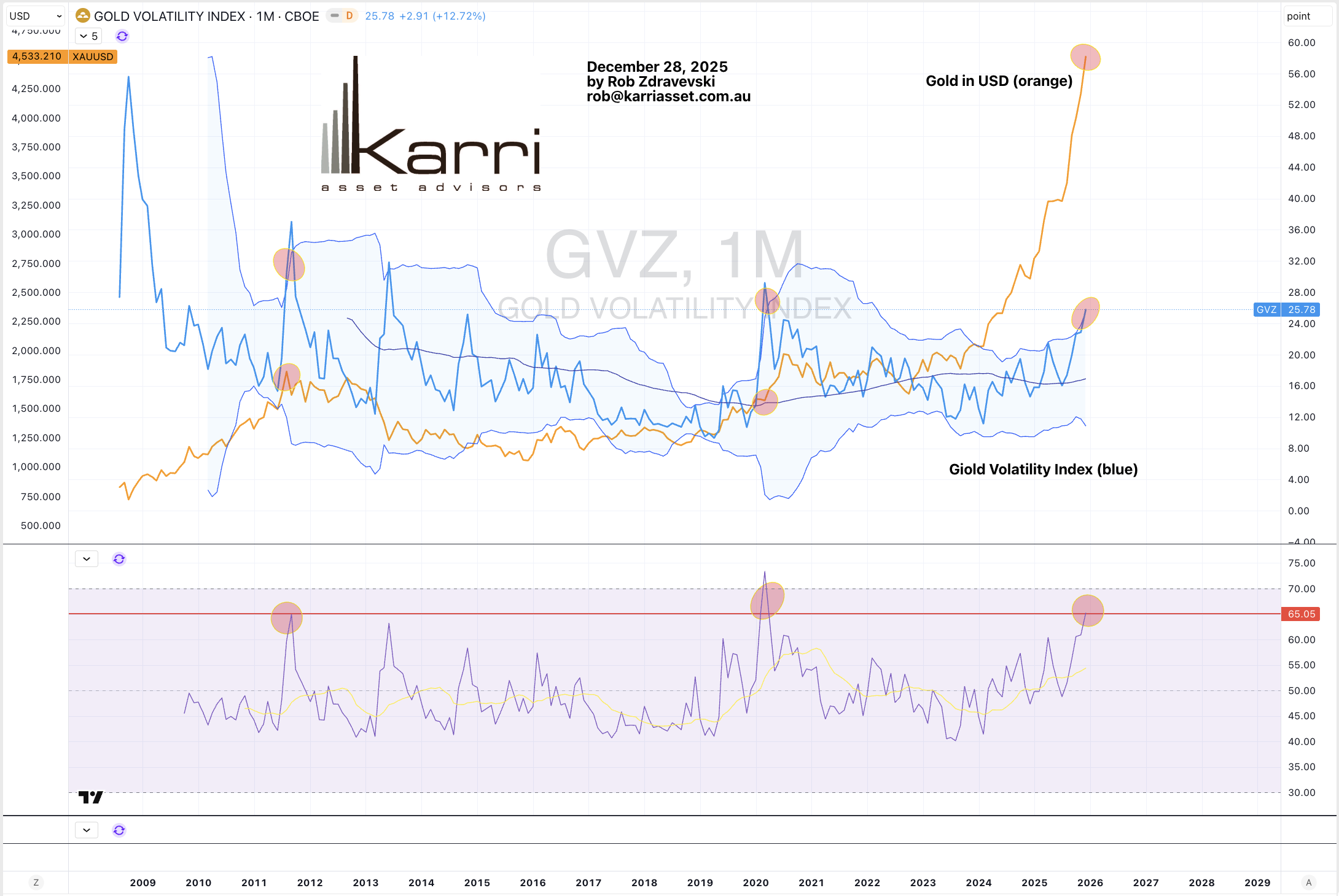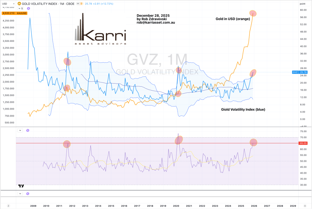 The attached study depicts the relationship between the price of Gold and the Gold Volatility Index