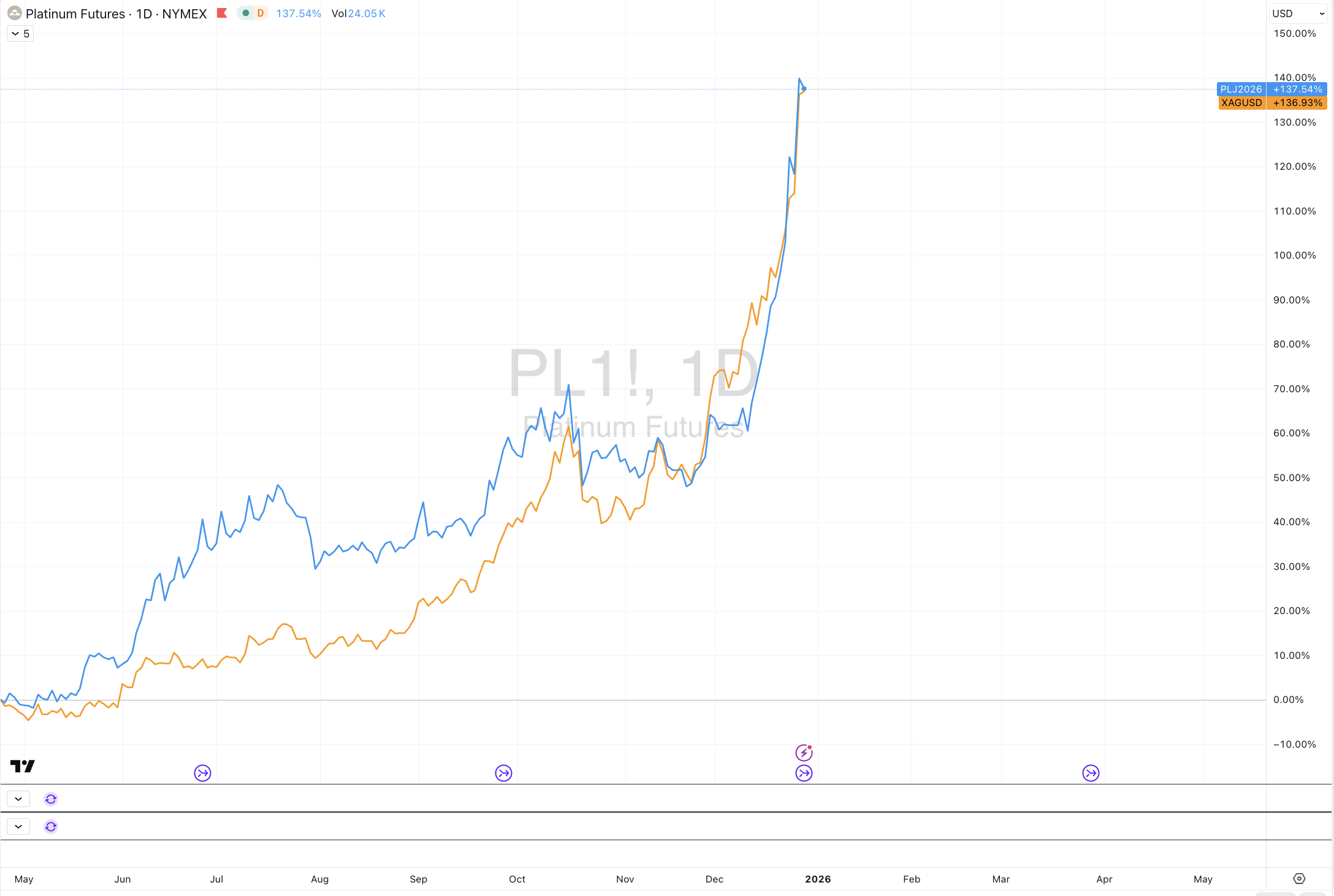 And the price of Platinum has mimicked that of Silver.