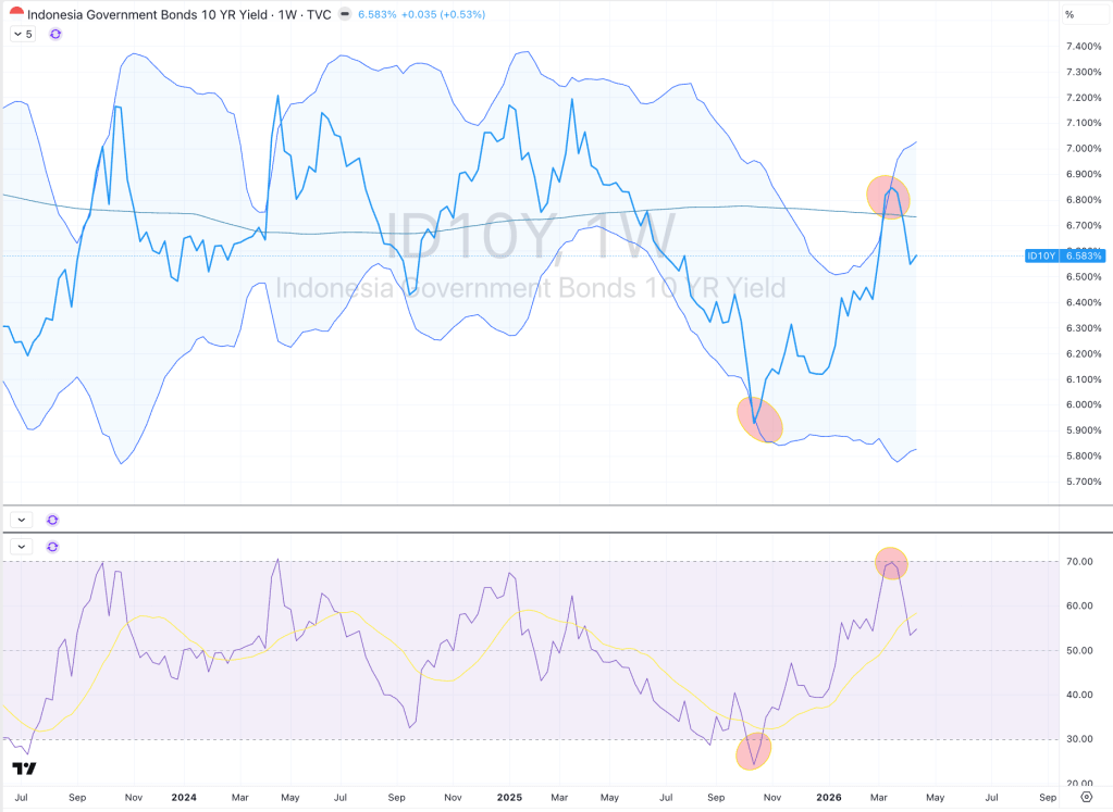 During the week of March 23, 2026, when they were trading between 6.8% and 6.9%, the Indonesian 10’s were a buy.