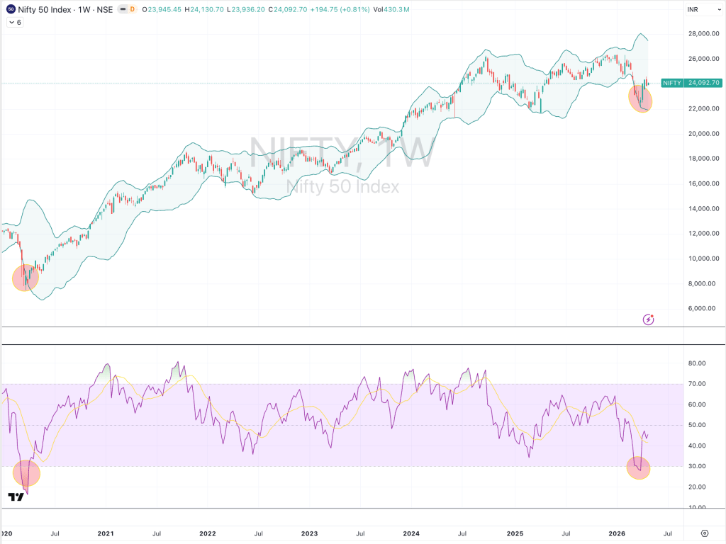 Here is a study showing the 2 moments when the #NIFTY has simultaneously traded at the lower extremes which I call an ‘oversold quinella’.