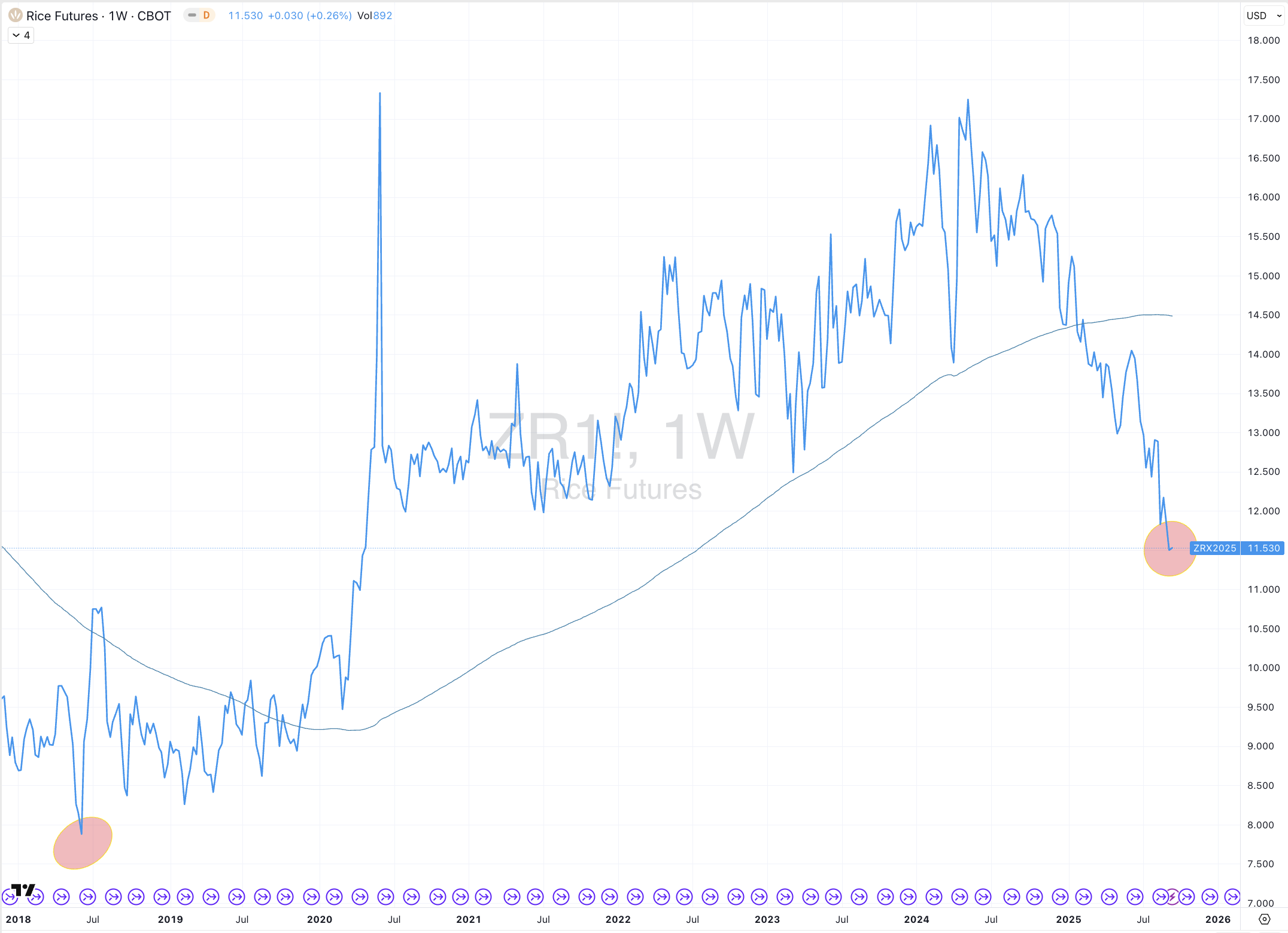 Cocoa has declined for 5 weeks.