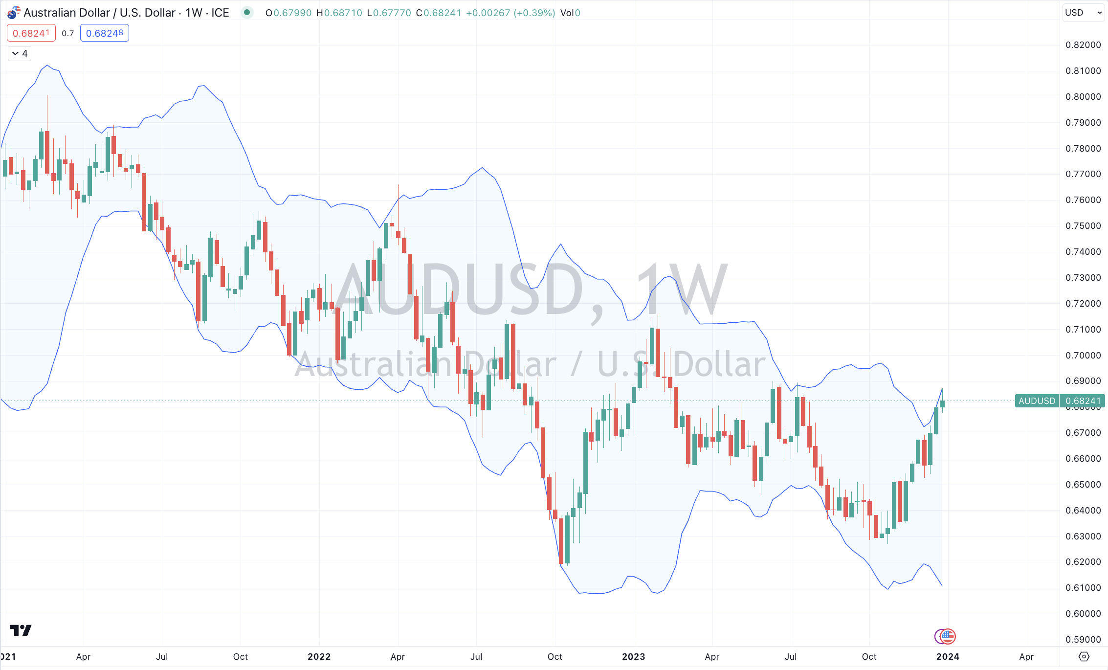4 months later, the AUDUSD is now trading at 0.6870 which is 2.5 standard deviations above its weekly mean.