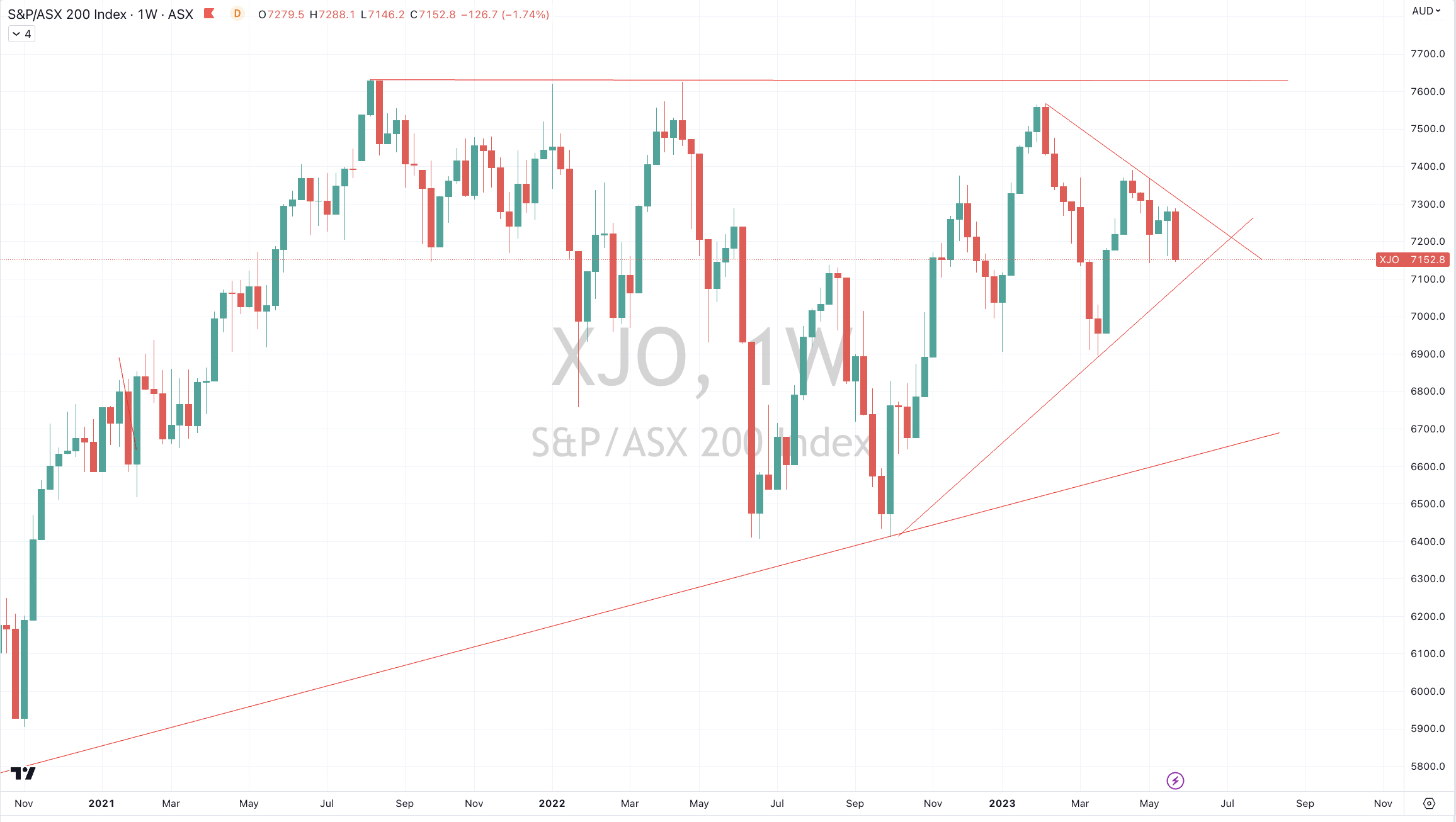 In the price chart below, the ASX 200 is yet to break the high seen in late January 2023.