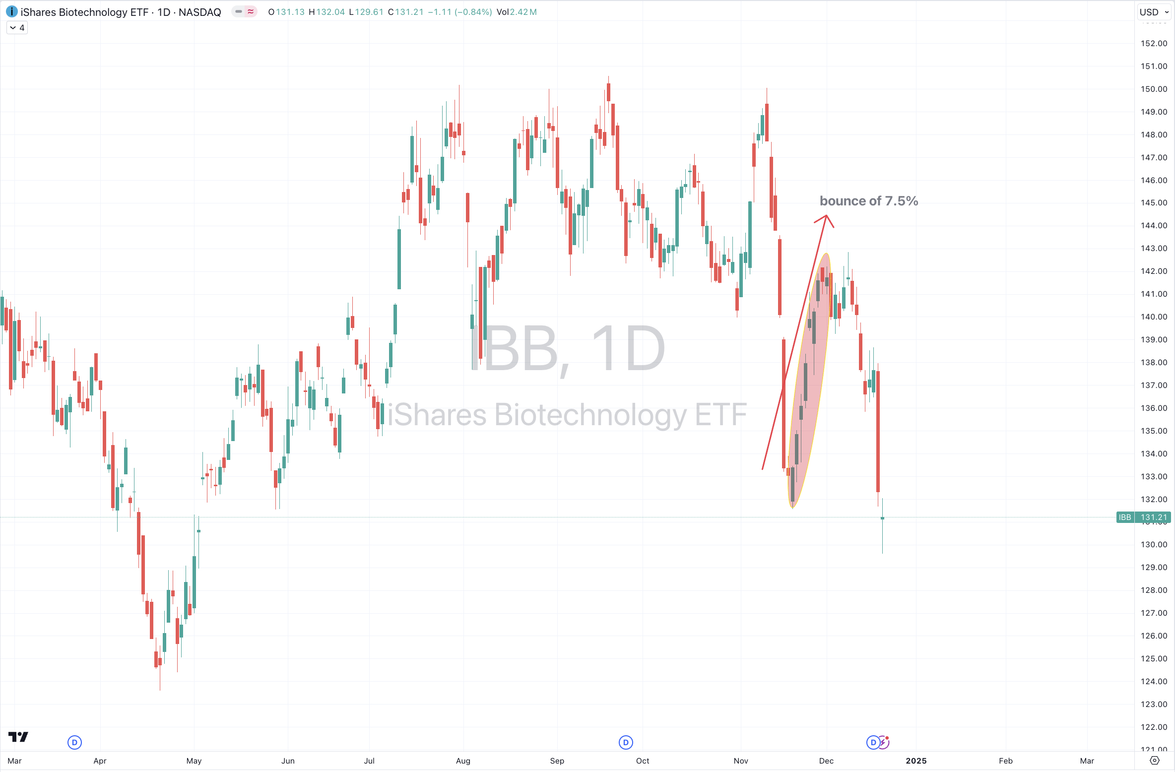 In that note, I referenced the iShares Biotech ETF (IBB).