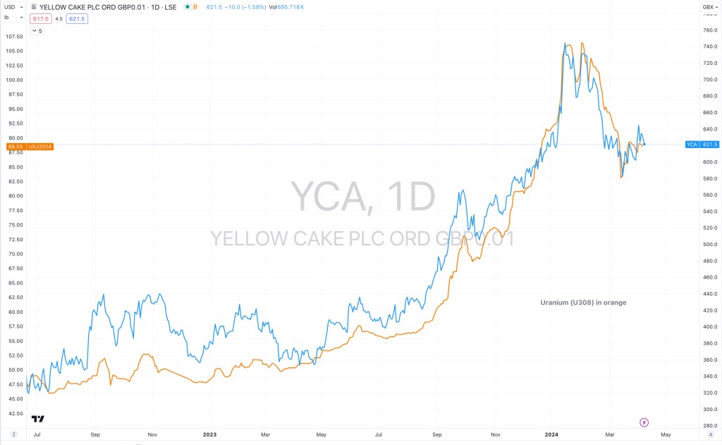 I’m still calling (or at least waiting for) lower prices in the uranium price and associated listed public companies.