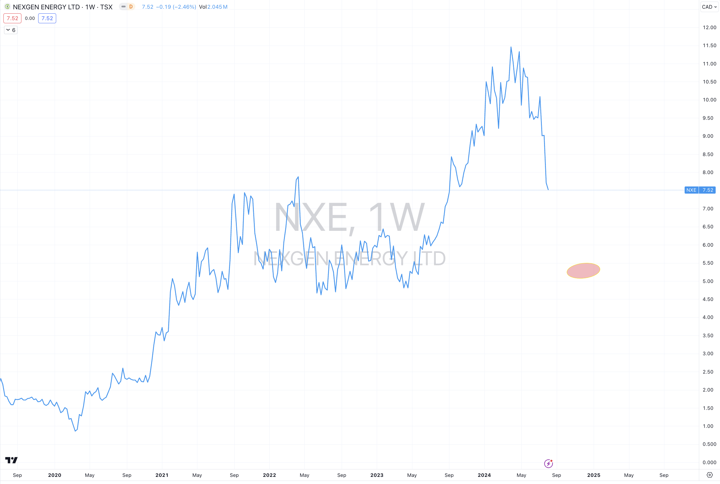 For example, I’d like to buy Nexgen Energy (NXE.TO, NXE CN) at C$5.30.