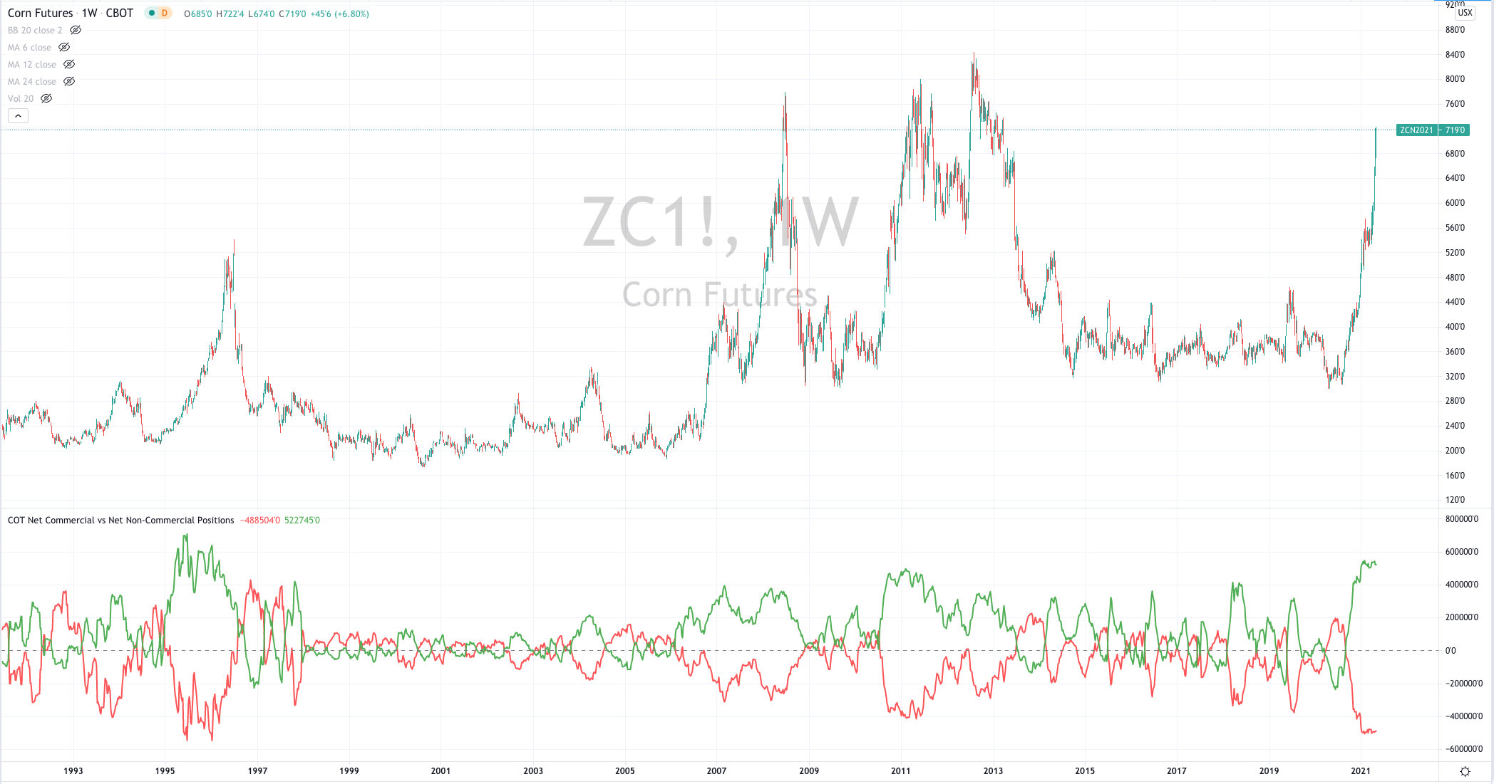 When I look at its price on a quarterly basis, corn have reverted to its rolling mean over a 40 year period.