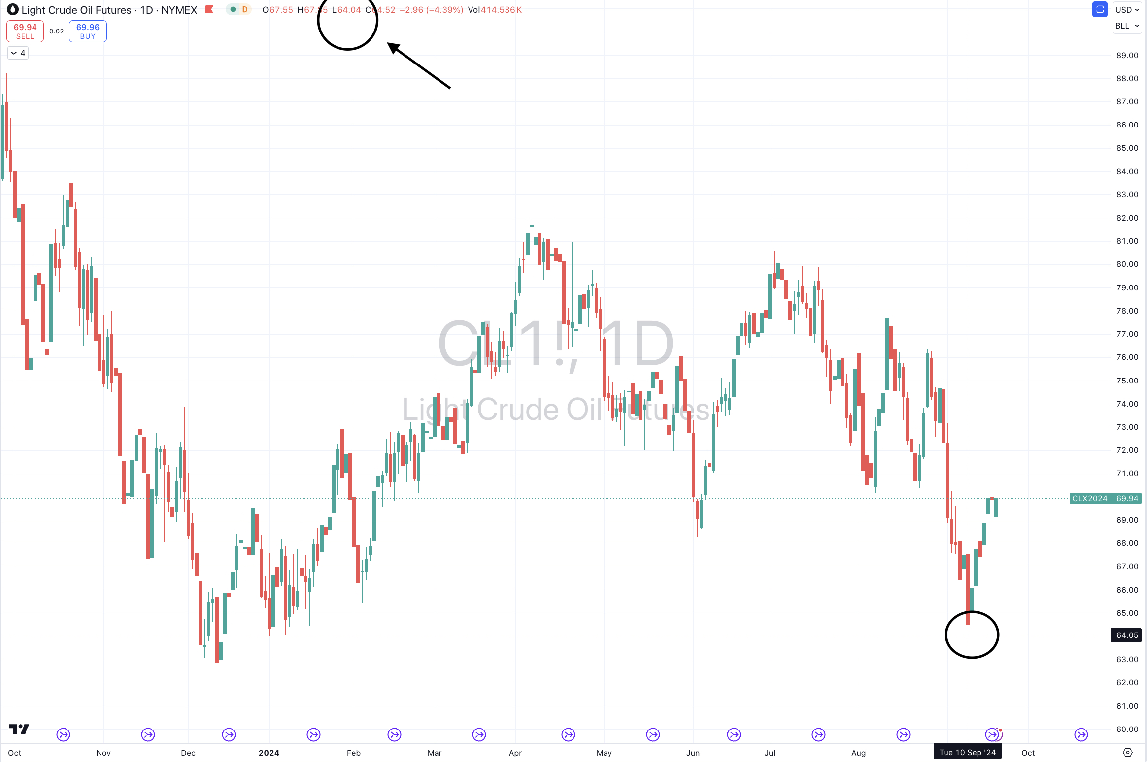 The time for preparedness of entering the long oil trade was around these dates when I wrote about it;