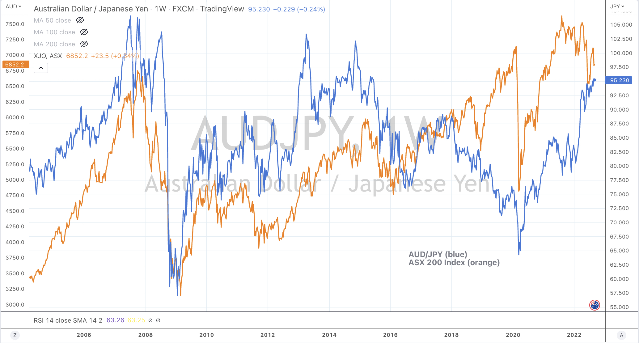 Correlations – AUD/JPY and the ASX 200 Index