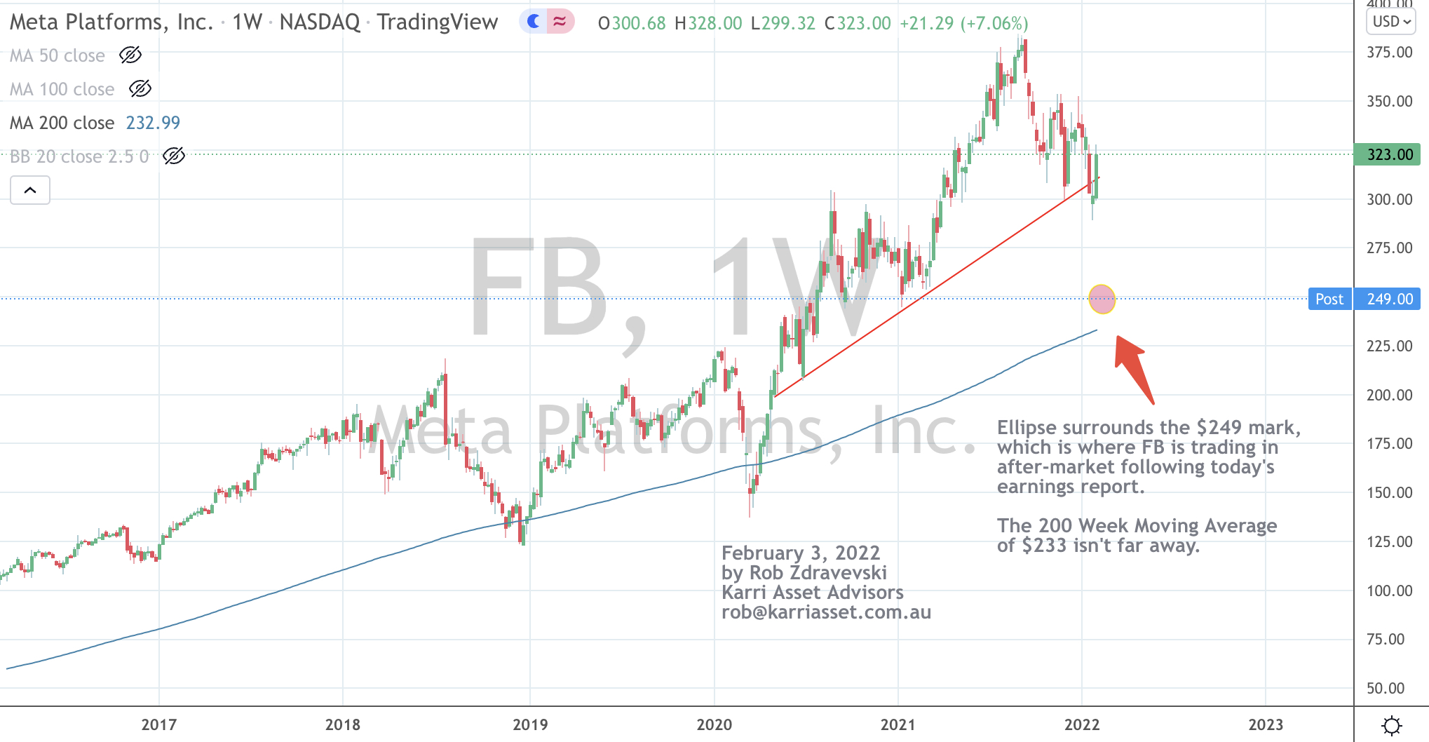 Facebook’s stock price is well on its way to a long term mean reversion.