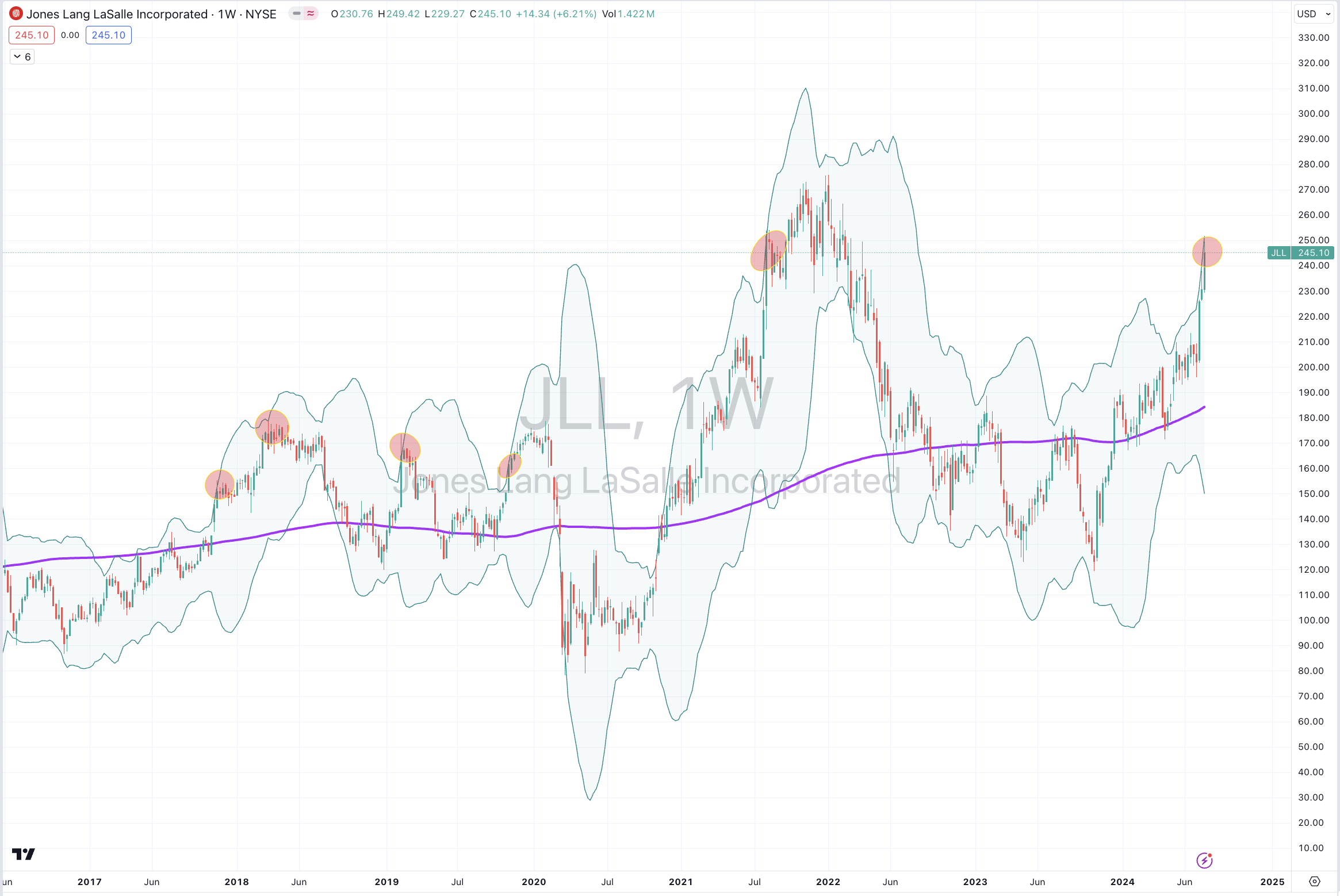 The study below features the stock price for Jones Lang LaSalle.