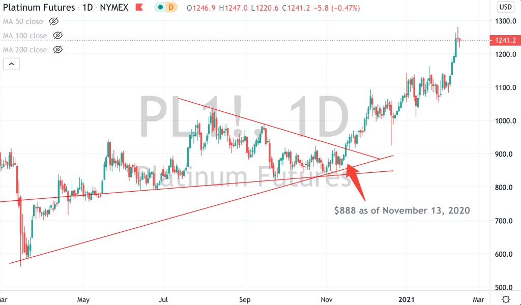 Today, Platinum is trading at $1,000 below the price of Gold.