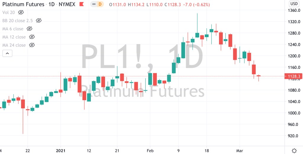The price of Platinum appears in orange, while Palladium is in blue.