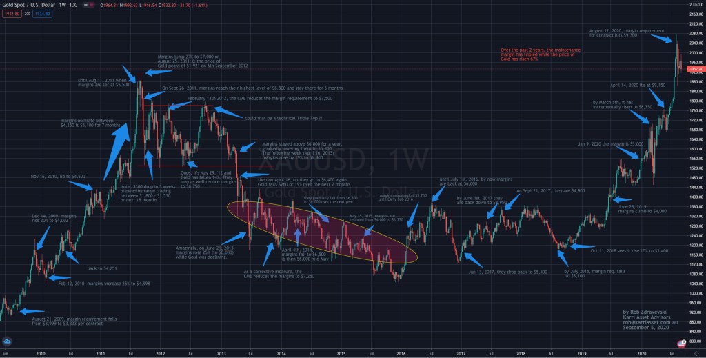 Over the past 2 years, the margins required to trade a Gold futures contract have tripled while Gold has risen 67%