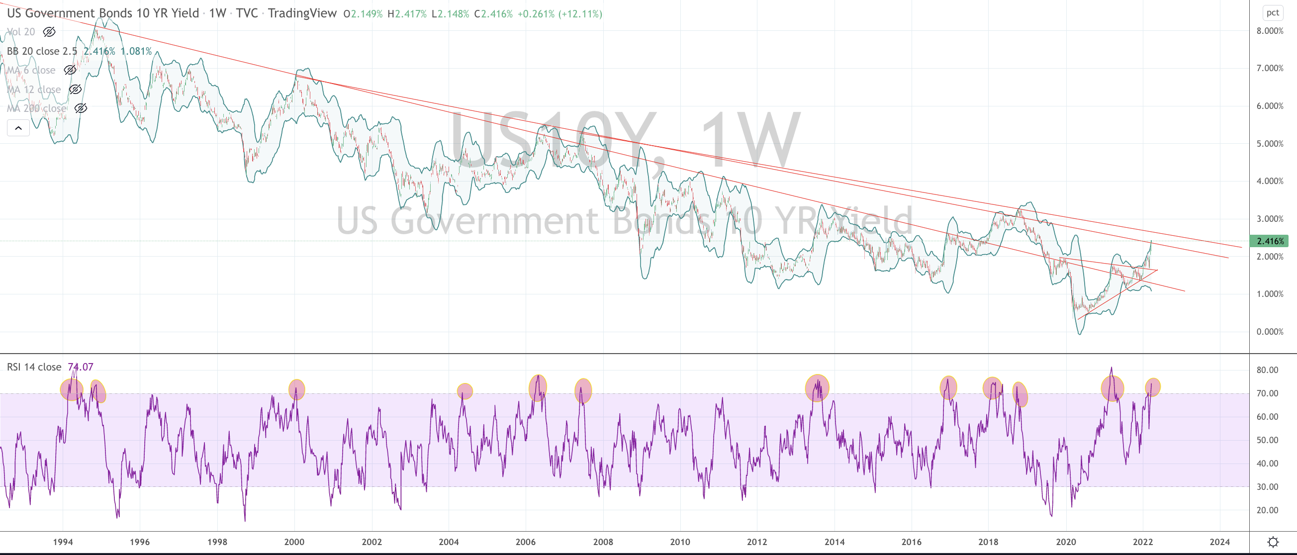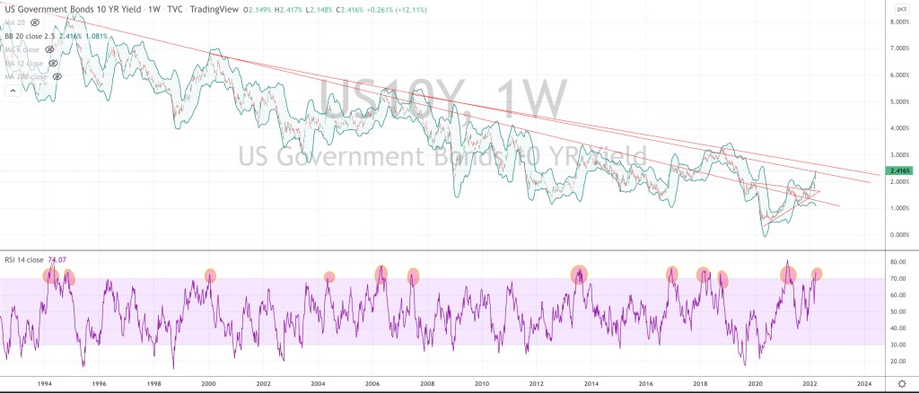 U.S. 10 year bond yield are at ‘overbought extremes’.